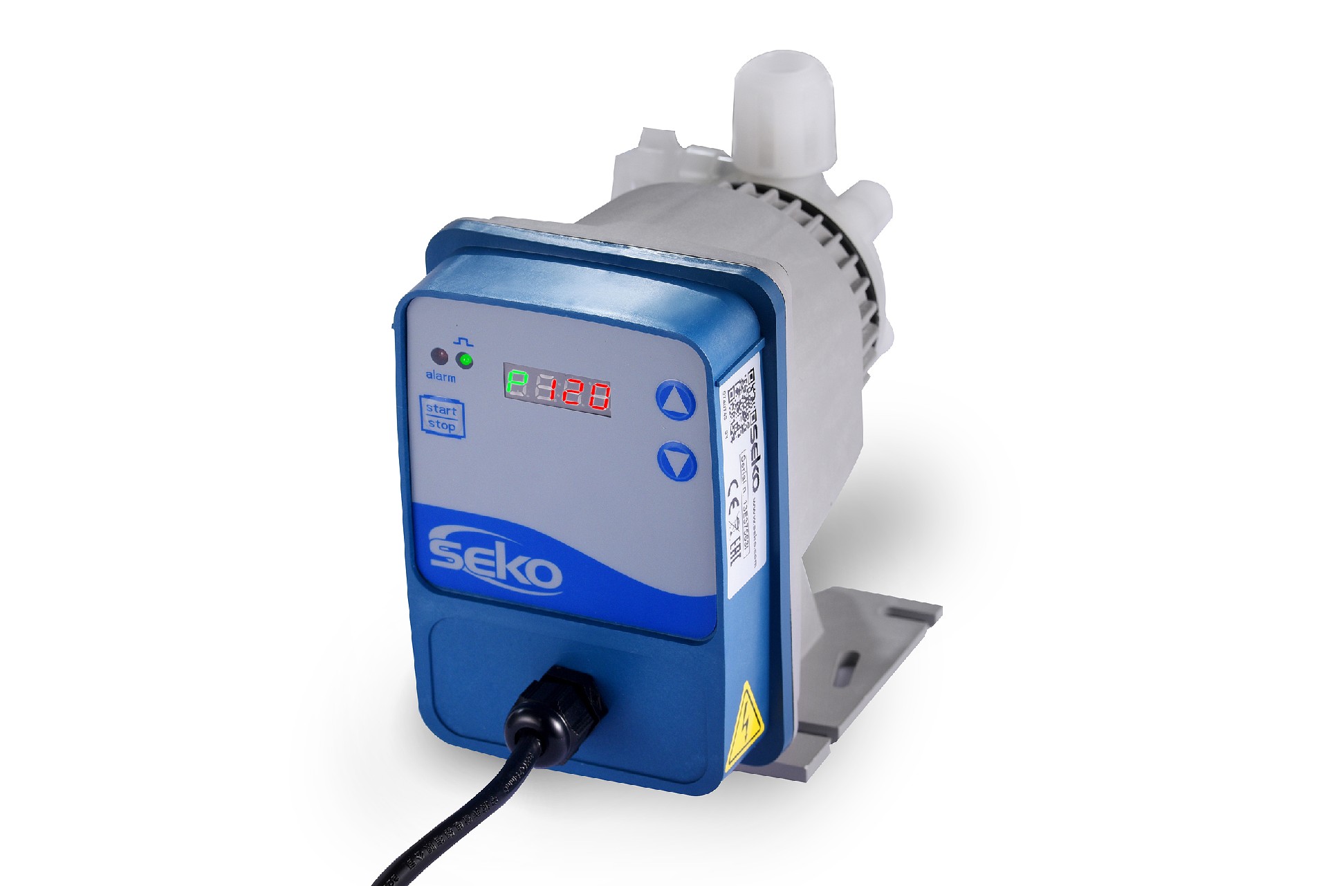 DMS200/DML/DMC/DMM是一款數顯式電磁隔膜計量泵,通過按鍵手動調節流量,可顯示頻率百分比(P%)和沖程數(F)。最大壓力:10BAR;流量:3-9L;泵頭材質:PVDF 主要應用于市政水處理和廢水處理,二氧化氯投加、反滲透、食品、飲料和制藥行業等。